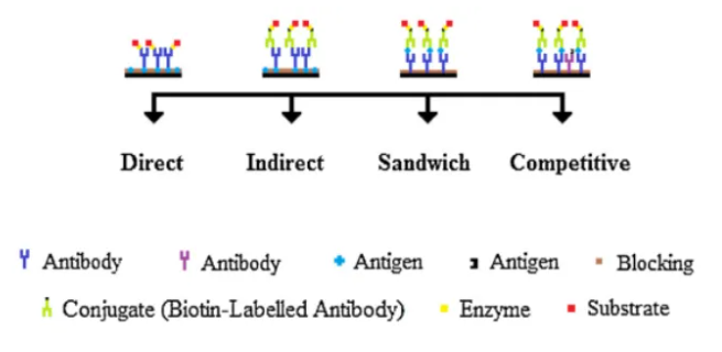 ELISA的發(fā)展起點(diǎn)要追溯到RIA(radioimmunoassay)的歷史,Yalow和Berson在1960s第一次使用碘標(biāo)記的RIA技術(shù)來測(cè)定內(nèi)源血漿中的胰島素水平,然而放射性實(shí)驗(yàn)安全風(fēng)險(xiǎn)太高,不適合進(jìn)行大面積推廣應(yīng)用,這時(shí)候一些科學(xué)家便想用生物酶來代替放射性標(biāo)記,但如何將酶與抗體或抗原連接而不影響彼此的生物活性成為了必須要捅破的窗戶紙,盡管在當(dāng)時(shí)被普遍認(rèn)為是不可能的實(shí)驗(yàn),Perlmann和Schuurs 還是在1966年力證了酶連接的免疫試驗(yàn)是可行的。